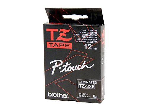 - TZE335 BROTHER 12MM WHITE TEXT ON BLACK TAPE