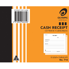 OLYMPIC #714 CASH RECEIPT BOOK CARBONLESS 50LF 125X200