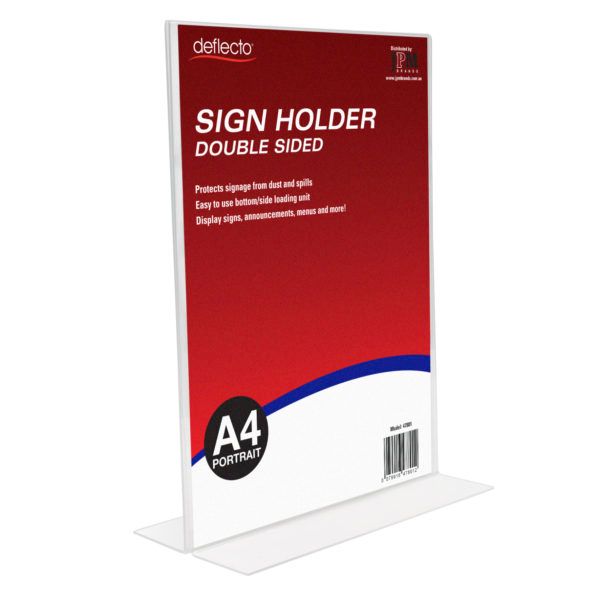- SIGN HOLDER A4 DESK STANDING DOUBLE SIDED PORTRAIT