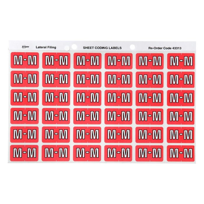 AVERY COLOUR CODING LETTER M LABELS PK180 43313 PINK SIDE TAB