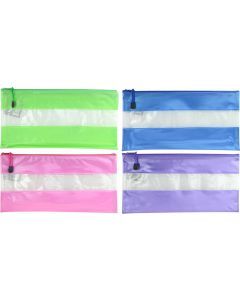 PENCIL CASE OSMER COLOURED STRIPS/MESH 34X17CM ASSORTED COLOURS