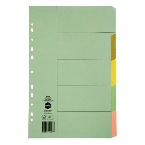 - DIVIDERS 5 TAB FOOLSCAP PASTEL MANILLA MARBIG