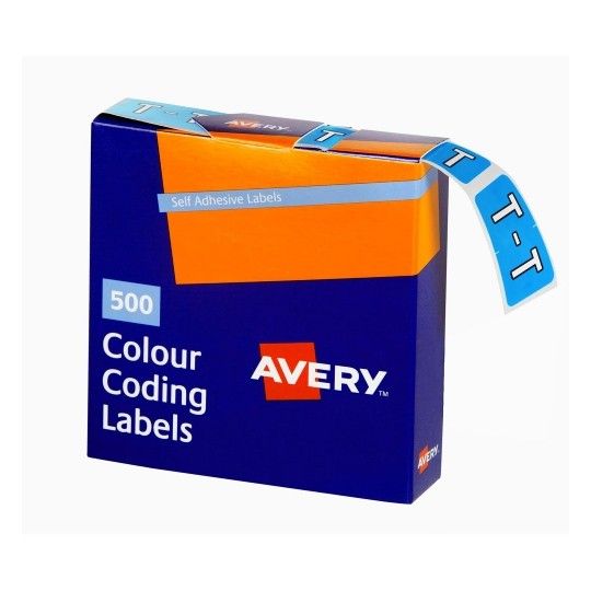 AVERY COLOUR CODING LABEL LETTER T BX500 SIDE TAB